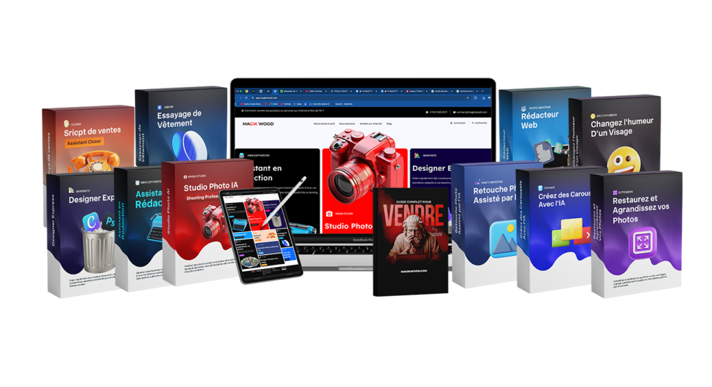 Accédez pendant 12 mois à tous les outils IA Magikwood pour booster votre business en ligne : création de visuels, textes marketing et automatisations, le tout pour seulement 50 € par an.